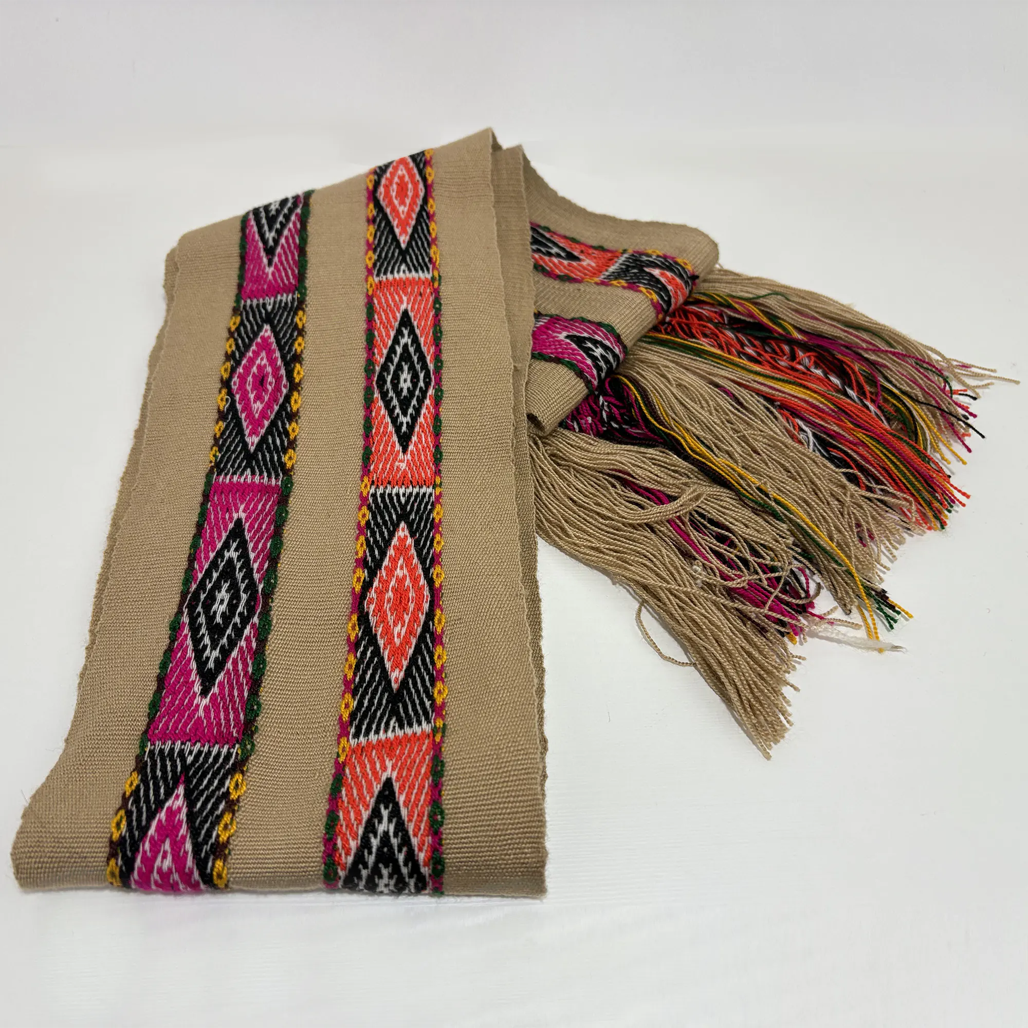 Esta chalina es una invitación a la maestría. Al portar esta pieza, llevas contigo el tiempo, la paciencia y el conocimiento ancestral de una comunidad que sigue manteniendo vivo el orden del cosmos en cada hilo.